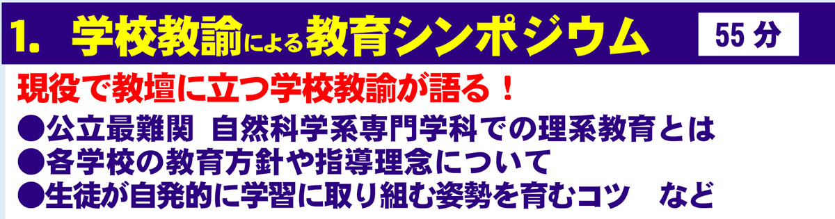 神戸総理・市西GS・宝塚北GS は、公立最難関と言われる自然科学系専門学科です。毎年、開進館からは多くの合格者を輩出しています。今回は、各高校教諭をお招きし、学校の教育方針や指導理念、理系教育などについて、詳しくお話ししていただきます。
