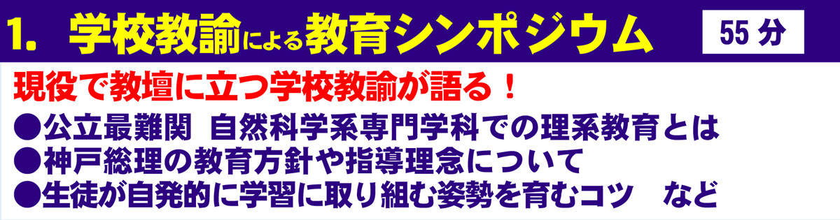 ※神戸会場では、神戸総理に特化した「神戸総理学校教諭による教育シンポジウム」を開催します。