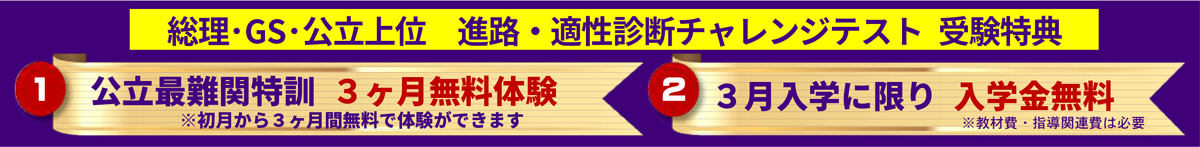 このテストの受験者は、公立最難関特訓を3ヶ月間無料で体験いただけます。