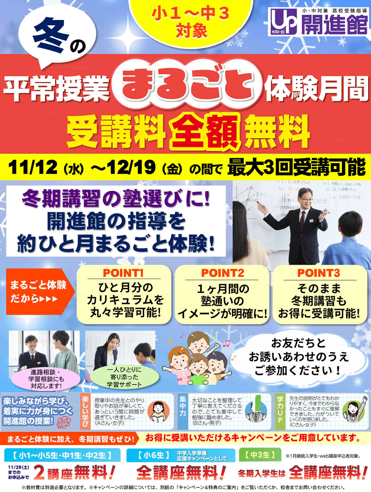 ※11/12(水)~12/19(金)の期間、好きなだけ授業を体験していただくことができます。