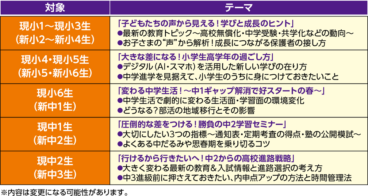 対象 | 小1~中2(新小2~新中3)の保護者さま |