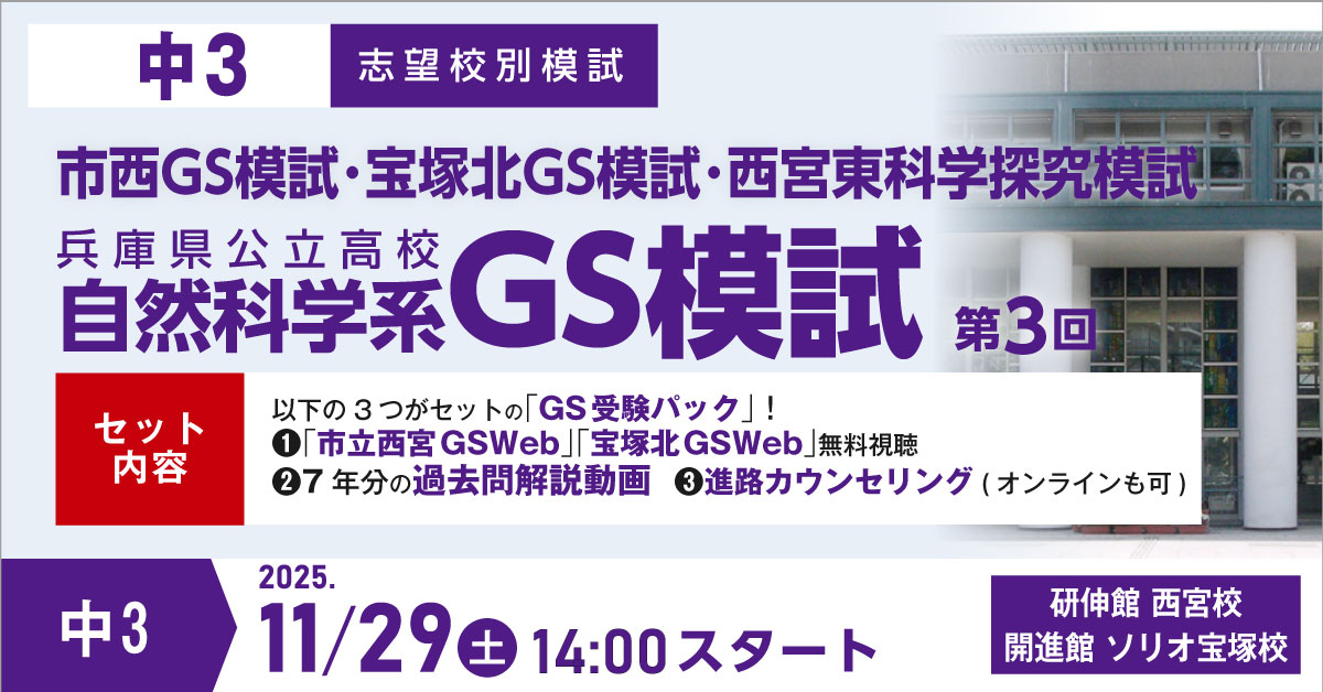 市立西宮GS・宝塚北GS・西宮東科学探究科など「公立高校 自然科学系」志望の中3生のための志望校別模試!