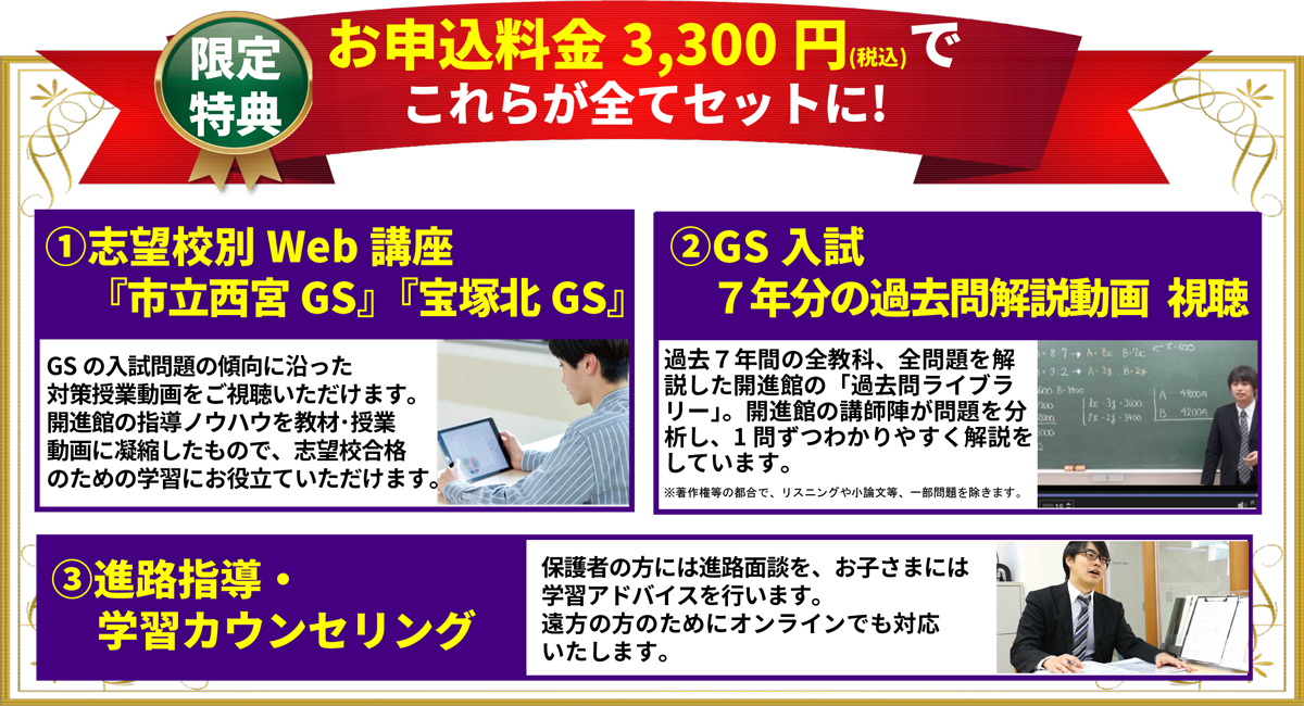 科目 | 市西GS模試 数学・理科・小論文 宝塚北GS模試 英語・数学・理科 西宮東科学探究模試 英語・数学 |