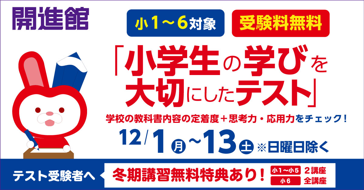 | 申込方法 | ・《校外生の方》下記のWEBフォームよりお申込みください。 ・《校内生の方》教室より配布する申込用紙に必要事項をご記入の上、指定期日までに開進館各校の受付にご提出ください。 |