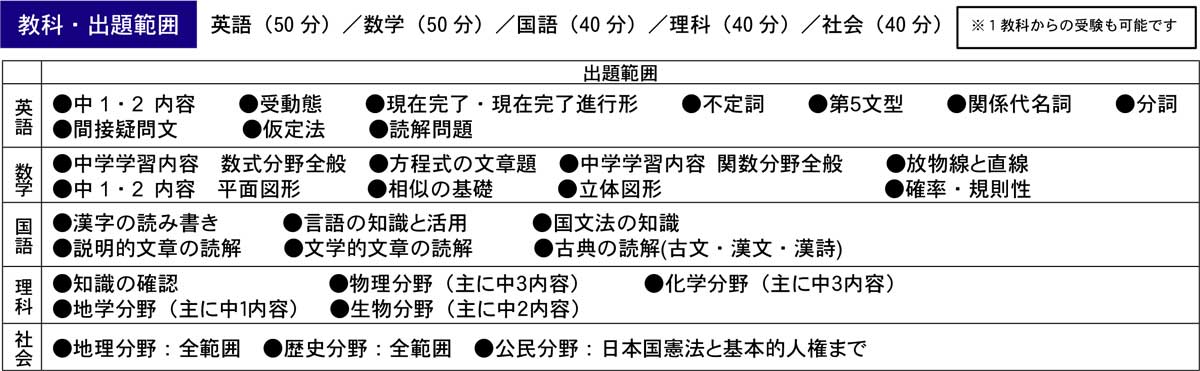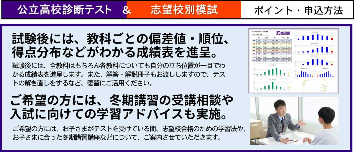 | 受験料 | 中3公立高校診断テスト:受験料無料 |