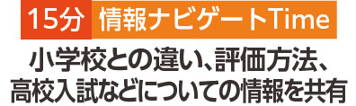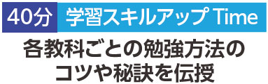 中学校での勉強のやり方を伝える「学習スキルアップタイム」、小学校との違いを伝える「情報ナビゲートタイム」、中学校のお勉強をする「授業チャレンジタイム」を毎回実施します。全回参加して中学入学に備えよう!