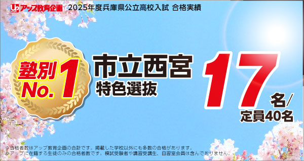 | 対象校 | 市立西宮高校 特色選抜「人間探究類型」 →市立西宮高校 グローバル・サイエンス科(市西GS)を志望の方はこちら |