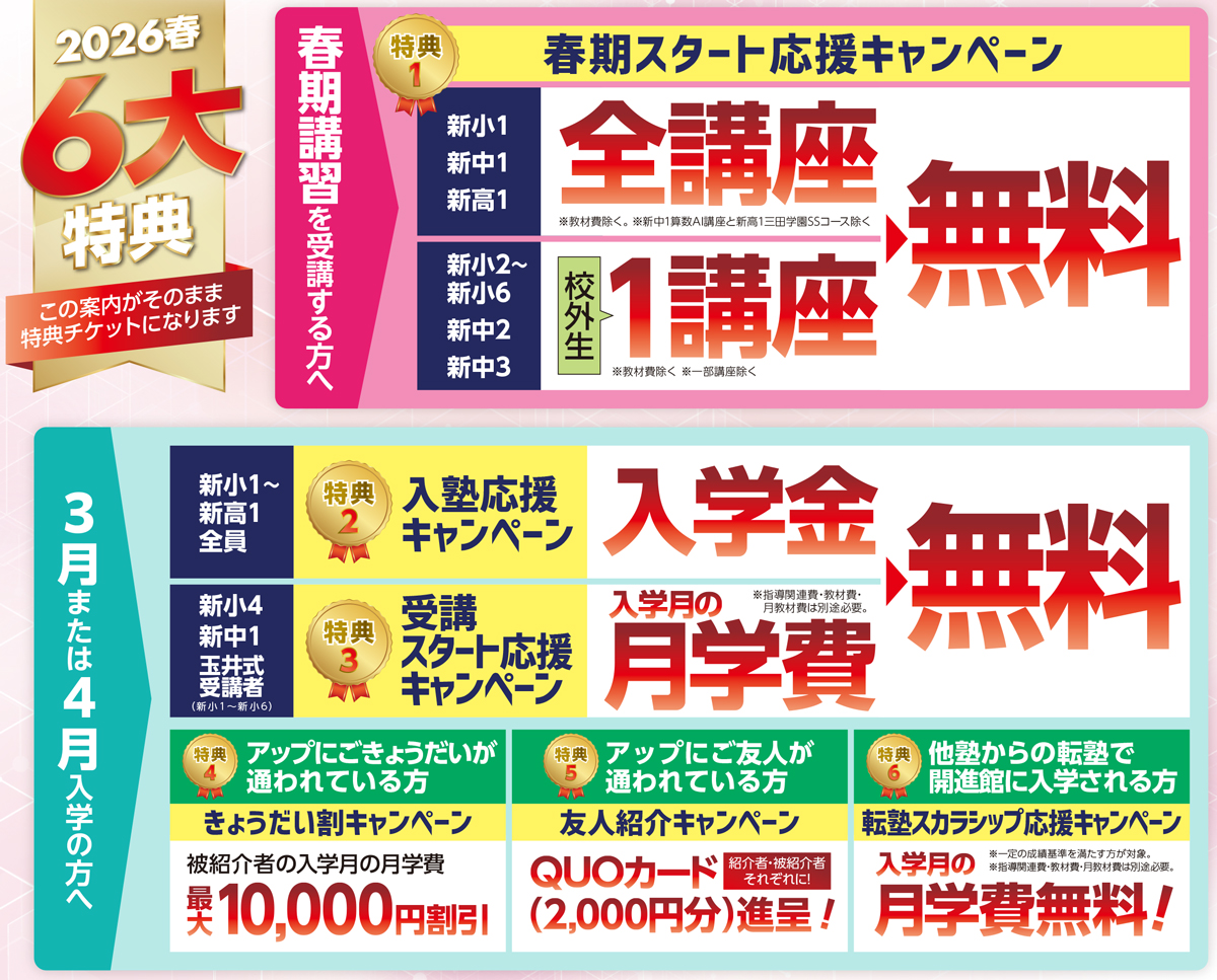 ✓《春期講習&3月・4月入学》お得なキャンペーン実施!