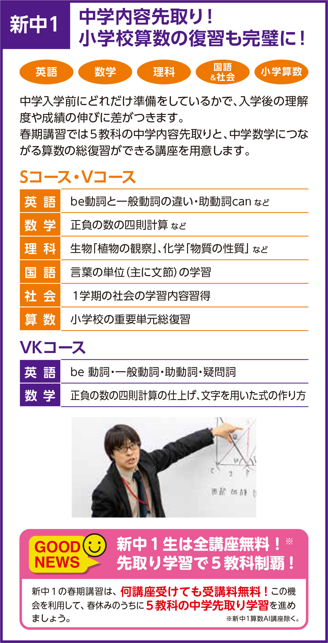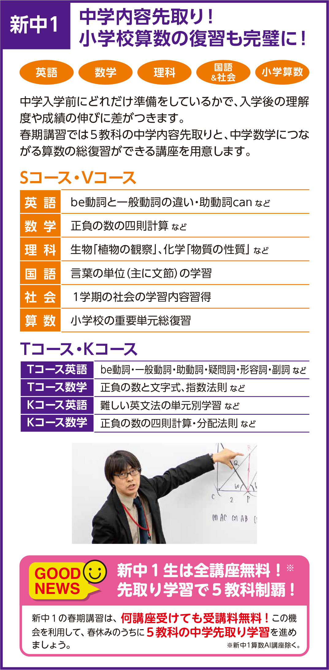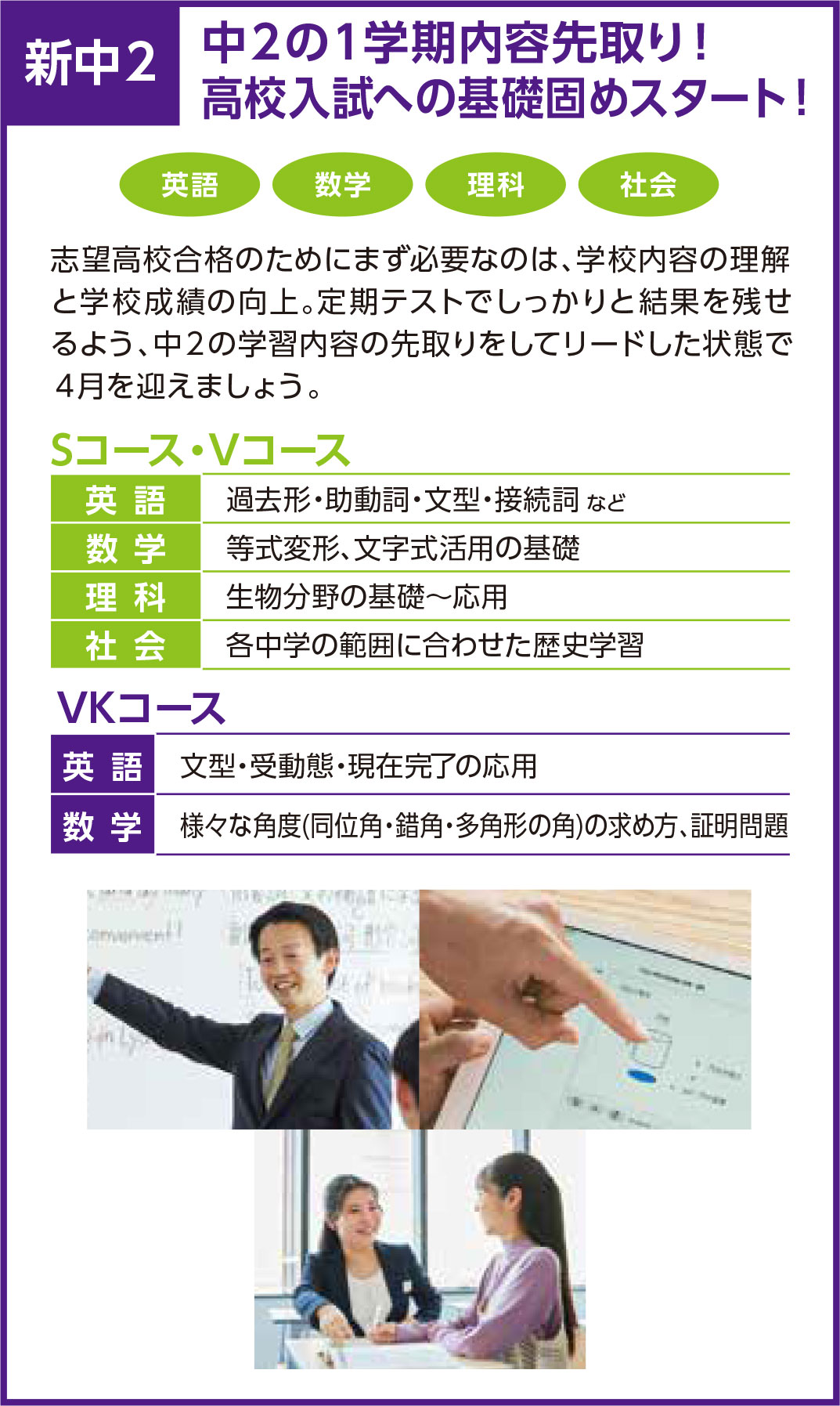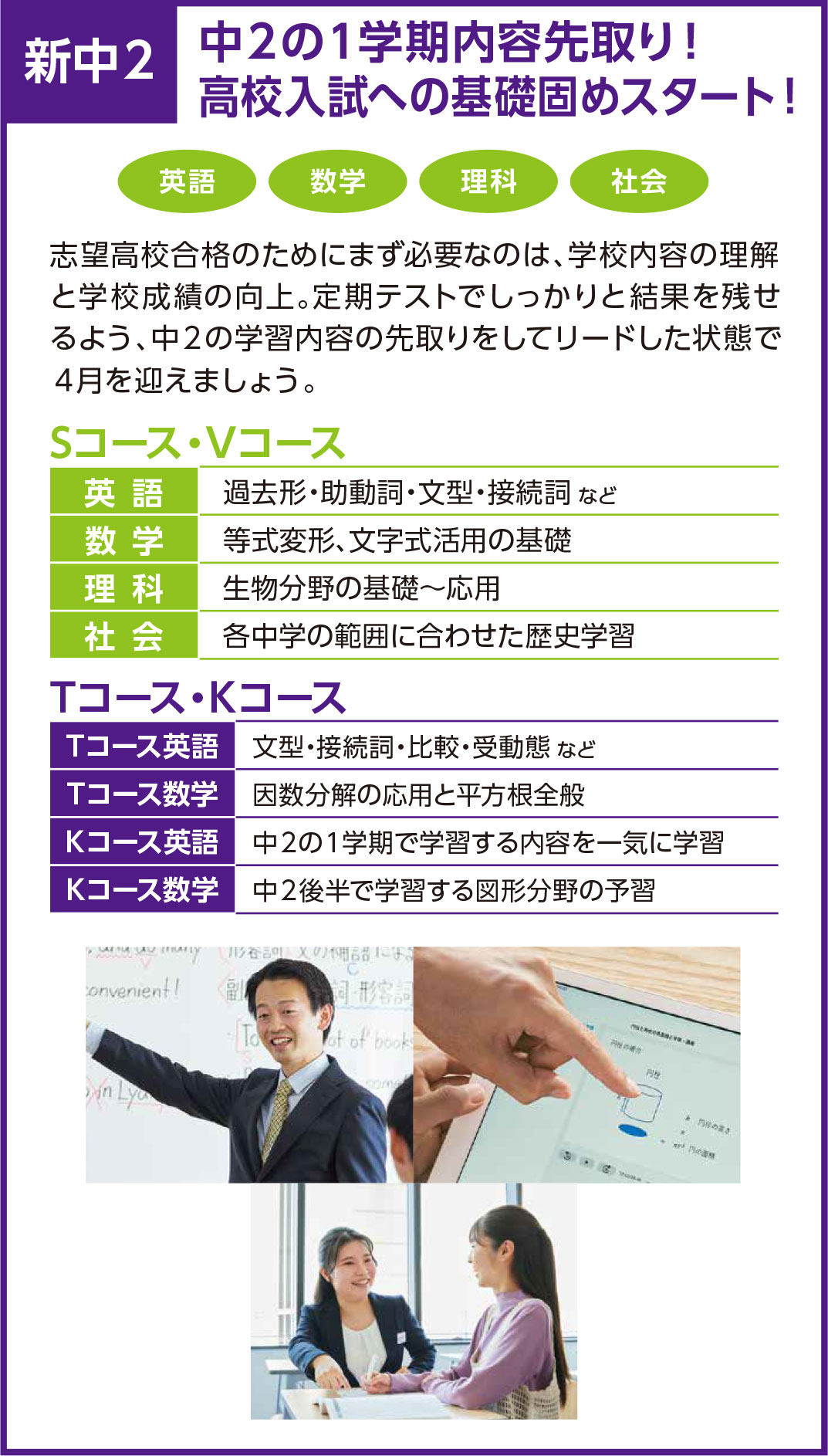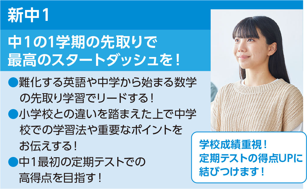 ✓【中学生】志望校合格につながる目標別コースで、学校成績の向上を!