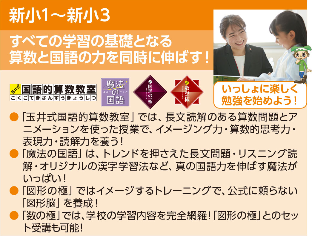 ◆小1~小3「玉井式国語的算数教室(教室指導)」