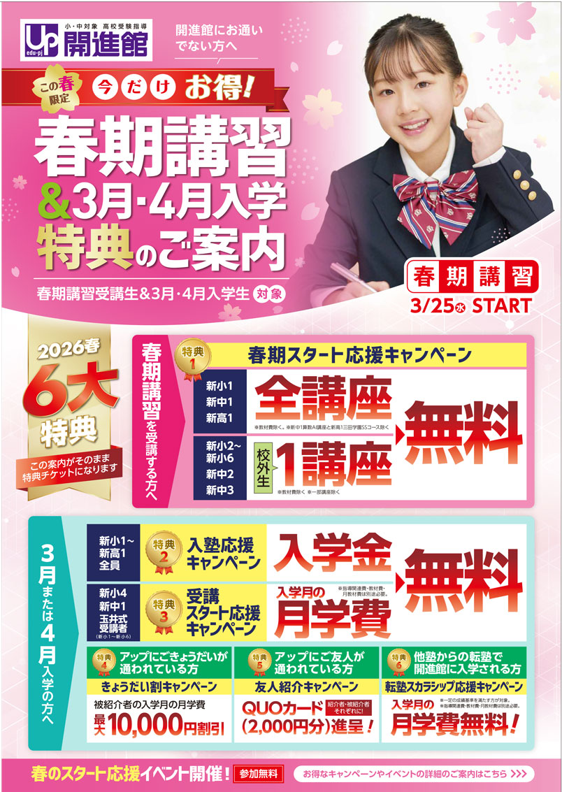 春期講習&3月・4月入学 お得なスタートキャンペーン&特典のご案内